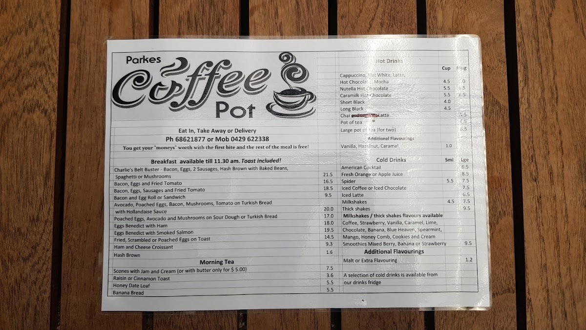 Customers rave about the delicious, homemade dishes and the community vibe that infuses every visit. As you savor your meals and drinks, you're sure to feel the warmth of Parkes’s local spirit. Come experience the joy that is Parkes Coffee Pot!